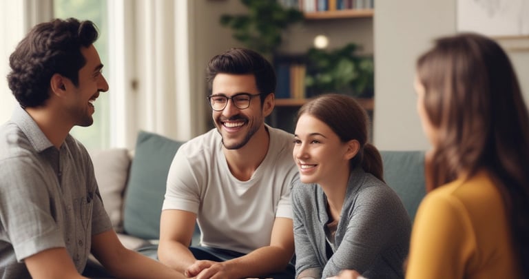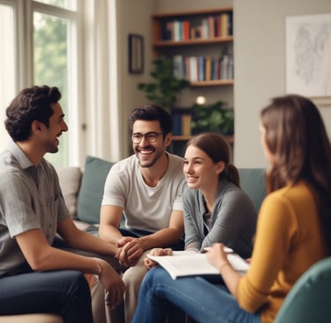 A calm, cozy space where a teenager and counselor engage in open conversation.
